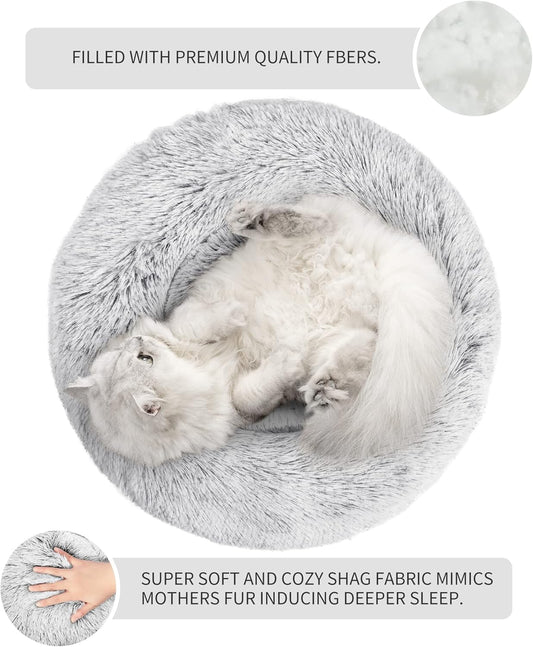 Calming Cat Bed for Indoor Cats, Anti-Anxiety Donut round Dog Bed, Fluffy Faux Fur Washable Pet Bed for Small Medium Dogs and Cats