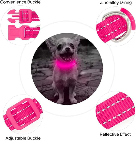 Light up Dog Collar - Reflective LED Dog Collar Rechargeable Glowing Pet Collar for Puppies & Cats, Safety Dog Lights for Night Walking